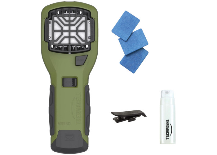 Пристрій від комарів Thermacell Portable Mosquito Repeller MR-350 - вдосконалена модель (у порівнянні з MR-300), що дозволяє комфортно перебувати на природі і не переймається тим, що комахи завадять займатися улюбленим захопленням. Для його роботи необхідно встановити газовий картридж, який фіксується в рукоятці та пластину з репелентом. Після натискання кнопки пристрій моментально почне діяти і вже за кілька хвилин утвориться своєрідний щит, що не пропускає комах. Відлякувач створює надійний захист від москітів на площі до 20 кв. метрів (на відстані до 5 метрів). Під час роботи не виділяється ні запаху та жодної рідини, тому його використання є абсолютно безпечним та чистим.